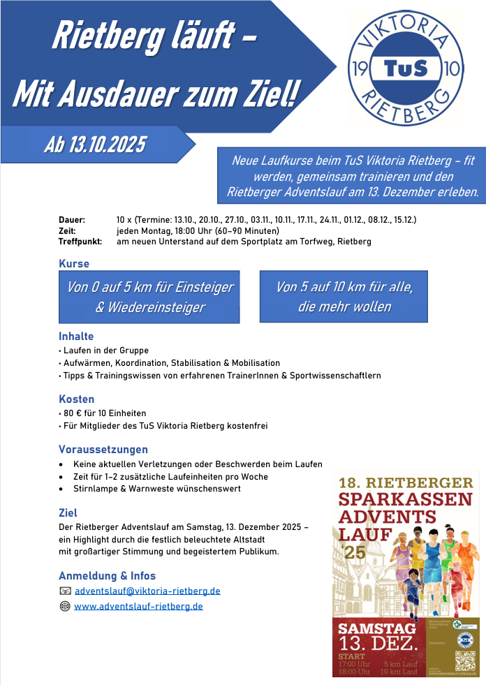 Mit Ausdauer zum Ziel – Bürgermeister sein ist kein Sprint.“ Dieses Zitat von Andreas Sunder passt nicht nur in die Politik, sondern auch in den Sport. Im Sinne eines aktiven und gesunden Rietbergs bietet die Leichtathletikabteilung des TuS Viktoria Rietberg ab Herbst neue Laufkurse an – ein Angebot, das weit über das reine Laufen hinausgeht. […]
