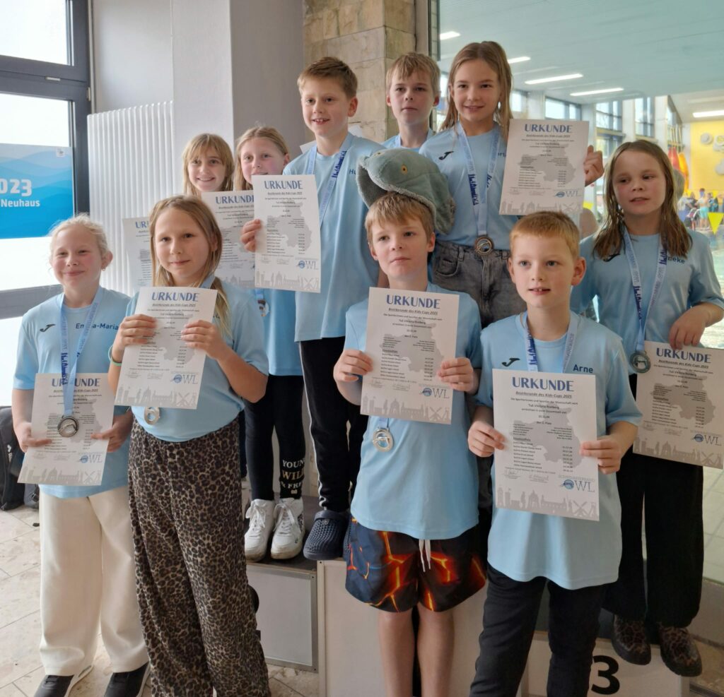 Unsere Jüngsten belegten heute beim KidsCup Bezirksfinale in Paderborn Schloß Neuhaus einen starken zweiten Platz. Mit ihrer herausragenden Gesamtzeit von 22:15,94 Minuten kann sich unser Team berechtigte Hoffnung auf das in zwei Wochen in Wuppertal stattfindende NRW Finale machen.