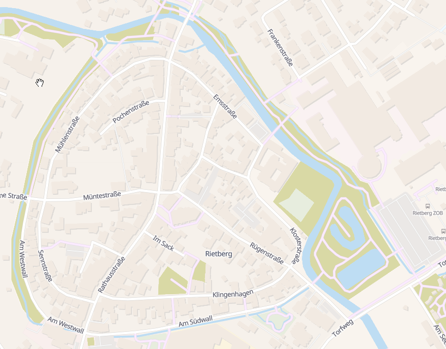 In dieser Karte seht ihr die Rietberger Innenstadt rund um den um den Klostergarten. Der eingezeichnete Weg führt euch direkt zum Schulzentrum mit angeschlossener Sporthalle. Dort findet ihr Umkleidemöglichkeiten, Duschen und Toiletten, die euch am Veranstaltungstag von ca. 16 Uhr bis 20:30 Uhr zur Verfügung stehen.