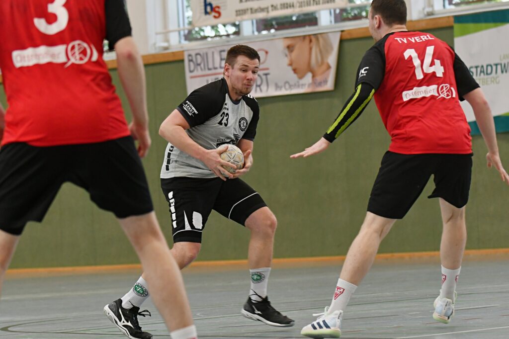 Herren-Kreisliga HSG Werther/Borgholzhausen II – HSG Rietberg-Mastholte 29:25 (13:13) Die 1. Herren musste sich in einem lange umkämpften Spitzenspiel in Borgholzhausen knapp geschlagen geben. Trotz der Niederlage war das Team zufrieden mit dem Gezeigten. Dabei waren die Vorzeichen bereits schlecht für die Gäste. Kurzfristig fielen Marvin Herbort und Maurice Mertner erkrankt aus, zu allem Überfluss