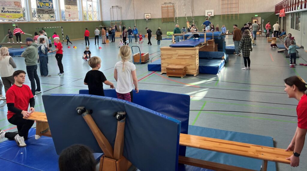 Hier kann sich die ganze Familie nach Herzenslust austoben. Gemeinsam mit ihren Eltern können Kinder ihren Bewegungsdrang in einem offenen Bewegungsparcour mit verschiedenen Stationen ausleben. Klettern, Balancieren, Hüpfen, Springen und vieles mehr ausprobieren, Erfahrungen sammeln und natürlich ganz viele Spaß haben.